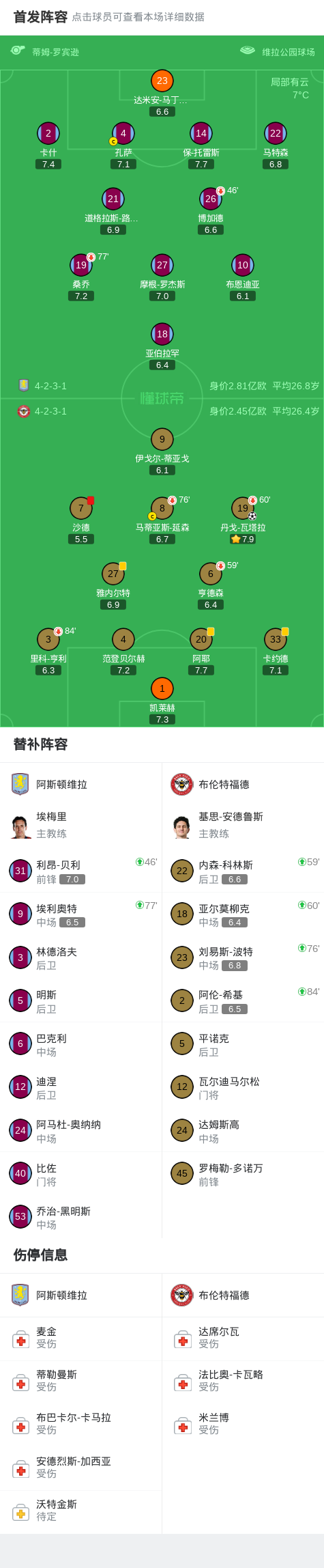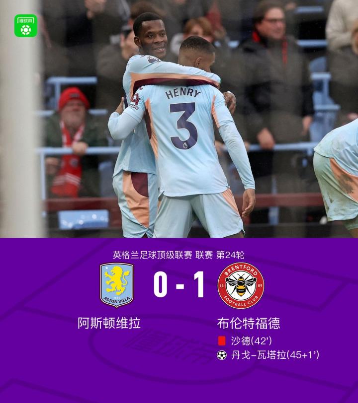 北京時間2月1日英格蘭足球頂級聯賽 聯賽 第24輪,阿斯頓維拉主場對陣布倫特福德。布倫特福德丹戈-瓦塔拉破門。最終比分阿斯頓維拉 0-1 布倫特福德。